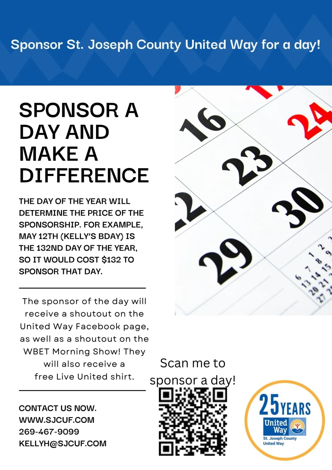 Introducing St. Joseph County United Way's newest event: Sponsor a Day! Sponsor a day for the cost of that day's number in the calendar year. For example, sponsoring May 12th would cost $132. Your sponsorship [...]